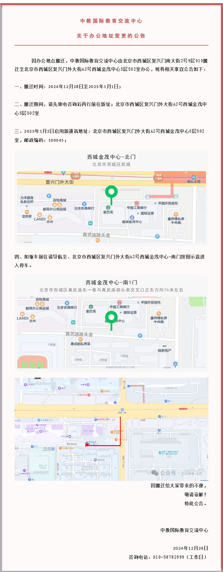 中教國際教育交流中心 | 關(guān)于辦公地址變更的公